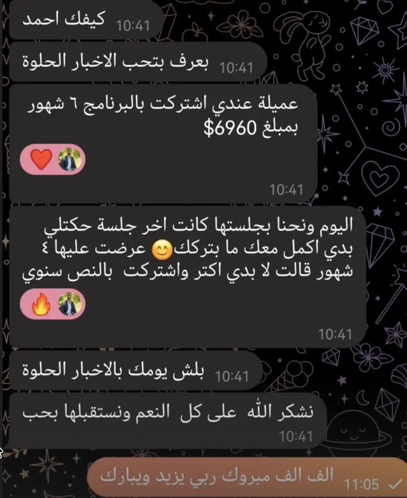 ابتكر د. أحمد استراتيجيات تمكنك من كسر السقف الزجاجي لدخلك المالي، عبر دمج تقنيات التحول العقلي مع استراتيجيات تسعير عروض النخبة (High-Ticket) والبيع الروحي الذي لا يعتمد على الإلحاح، بل على جذب القيمة والوفرة.